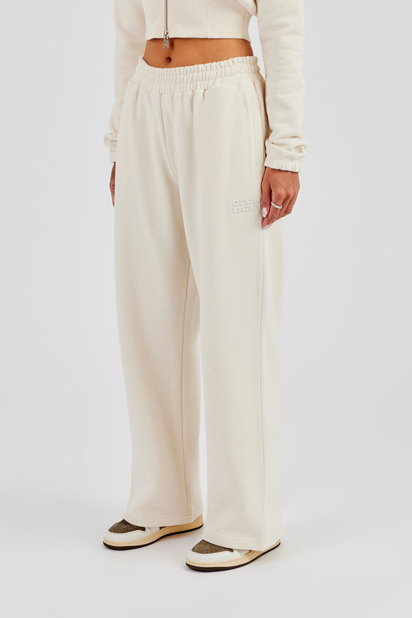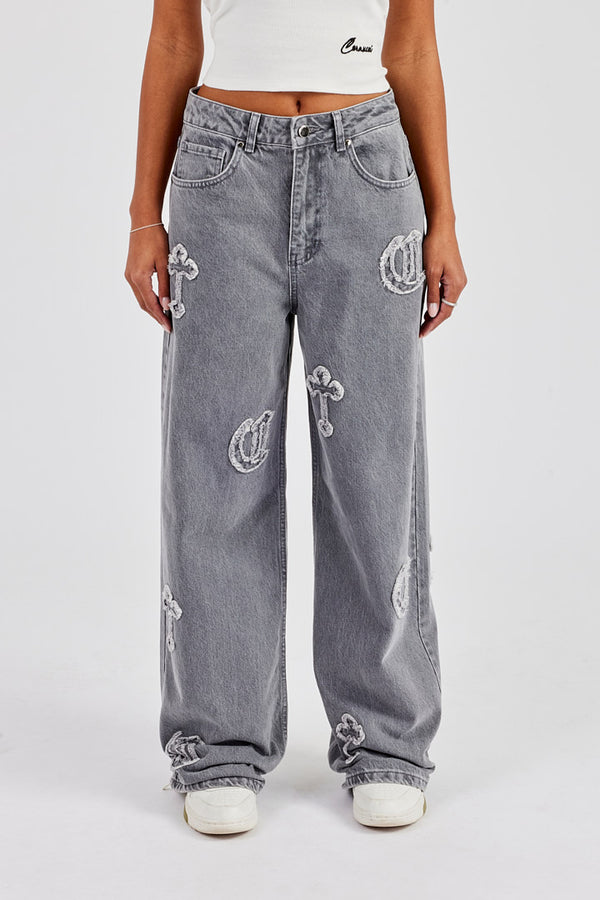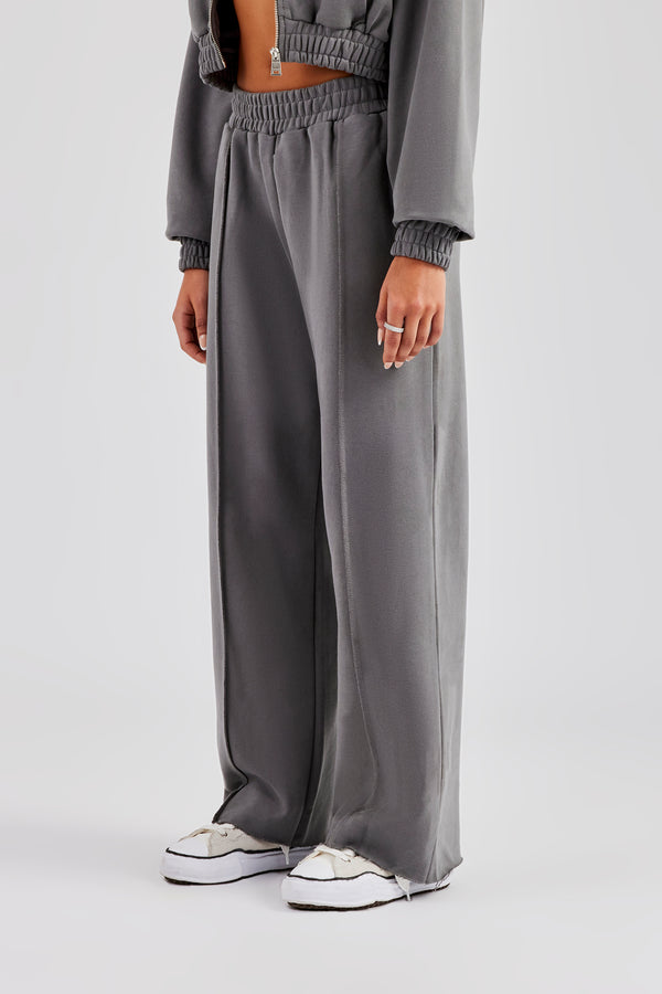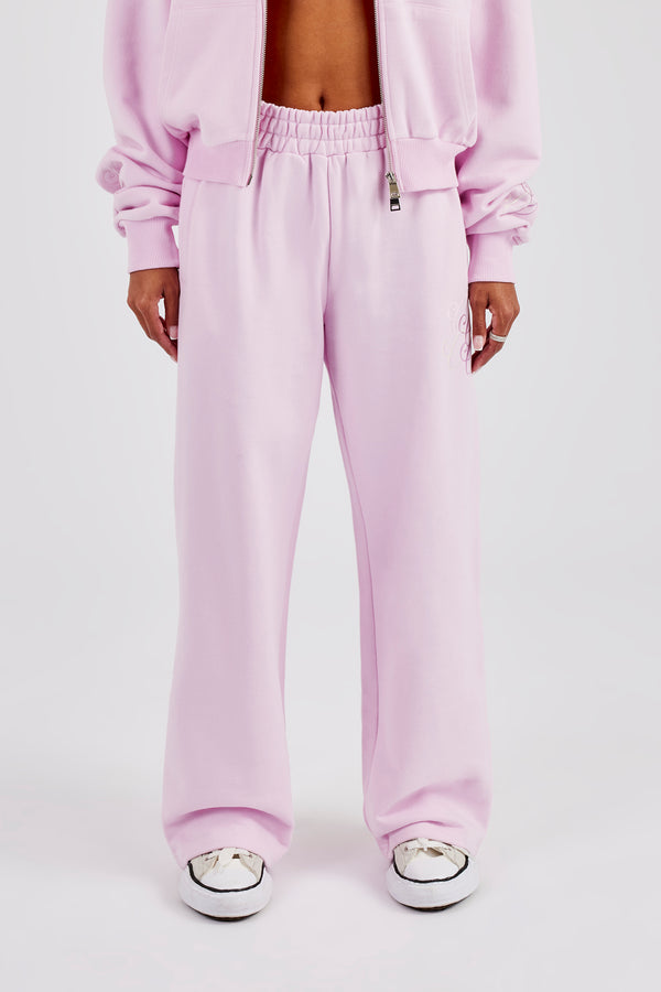 Embroidered Cernucci Wide Leg Jogger - Ash Grey