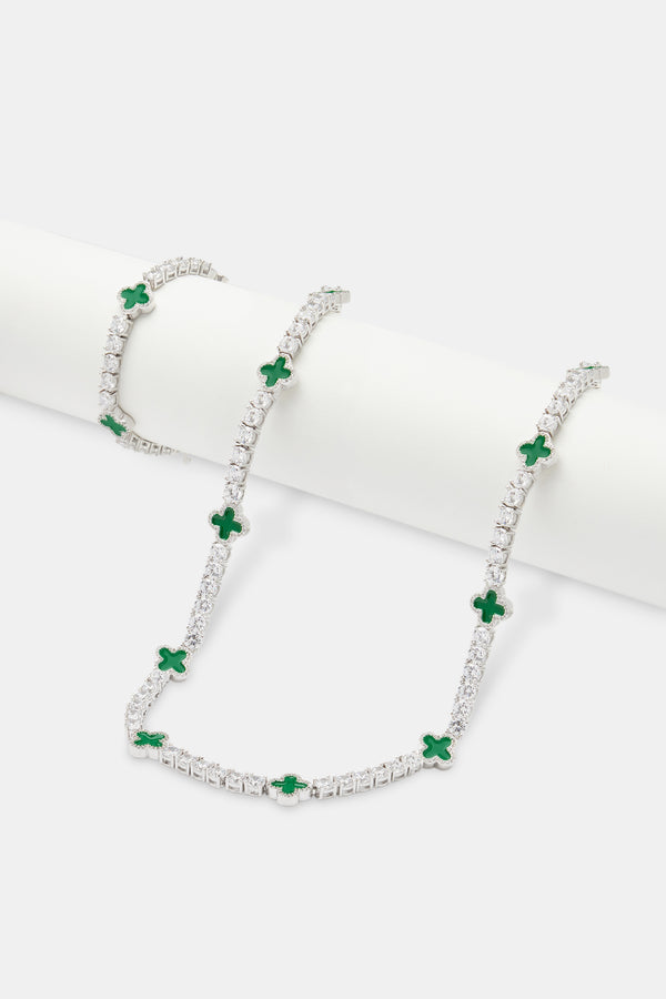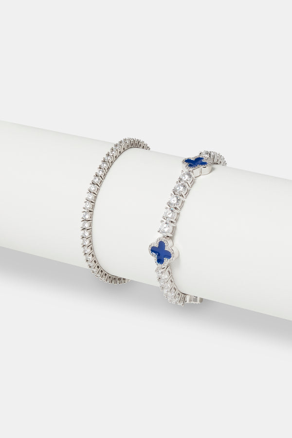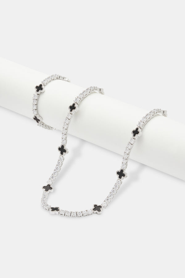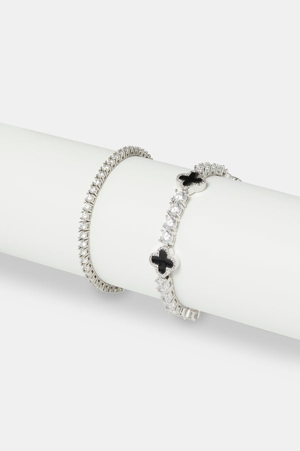 12mm Black Enamel Cross Motif Bracelet & 3mm Tennis Bracelet - White