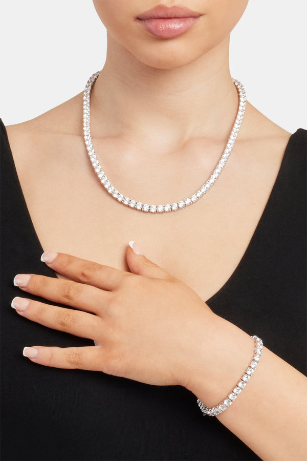 Womens 3mm Tennis Chain & Bracelet - Gold