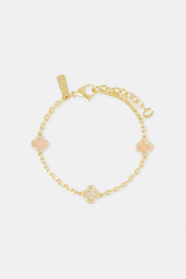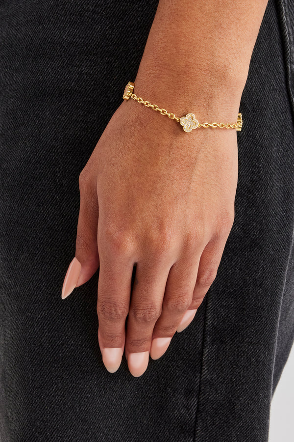 Iced Oval Stone Rolo Bracelet - 6mm - Gold