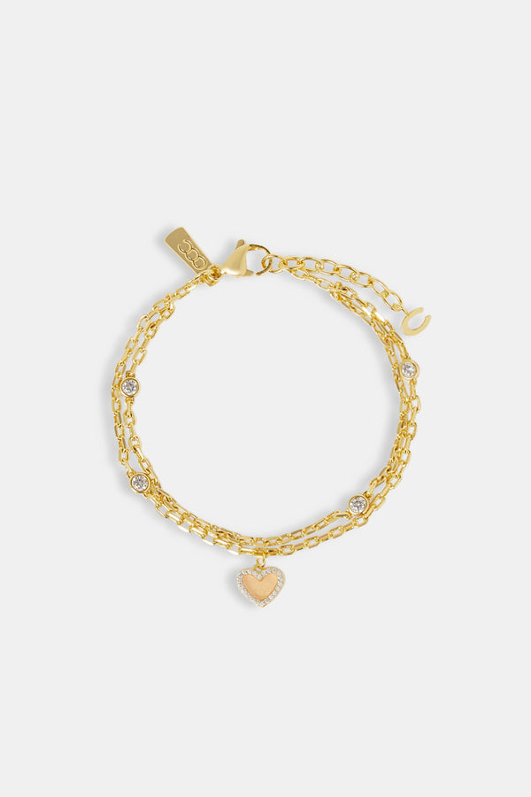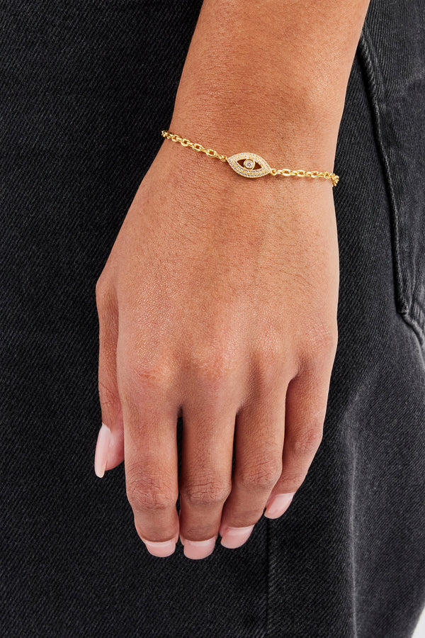 Iced Oval Stone Rolo Bracelet - 6mm - Gold