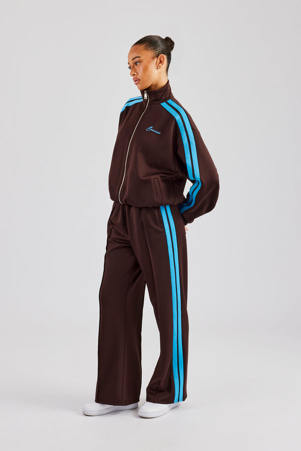 Soft Touch Double Stripe Wide Leg Trouser - Chocolate