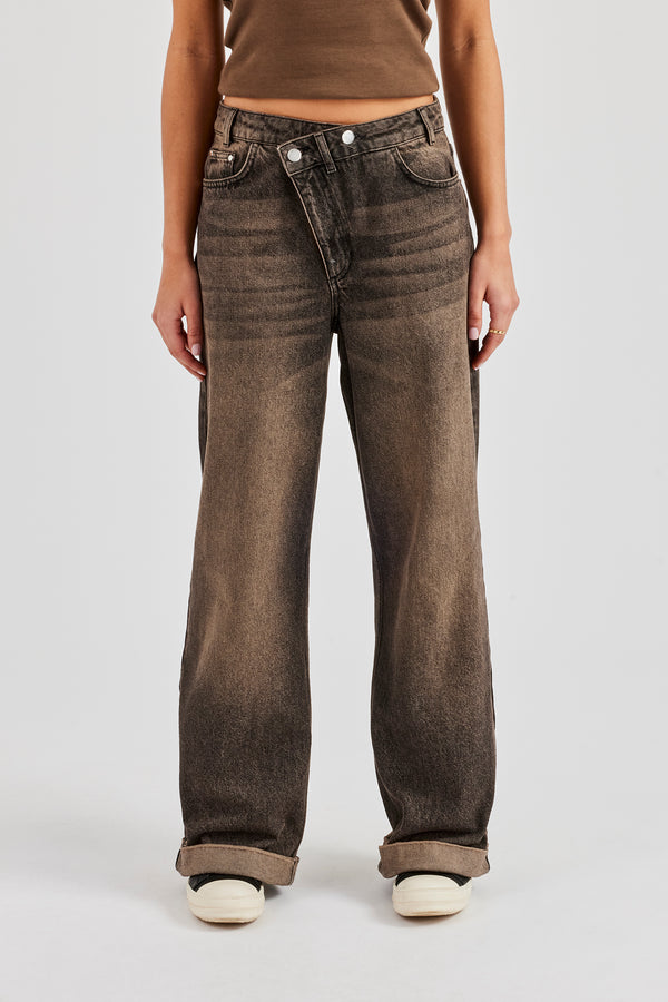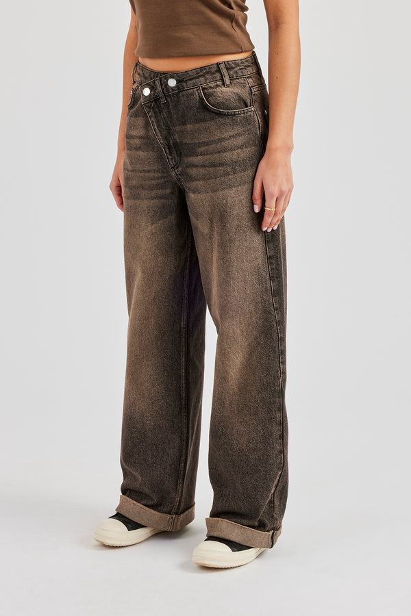 Baggy Low Waistbandless Detail Jean - Washed Black