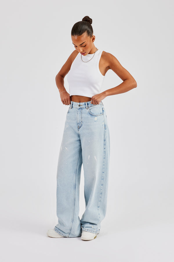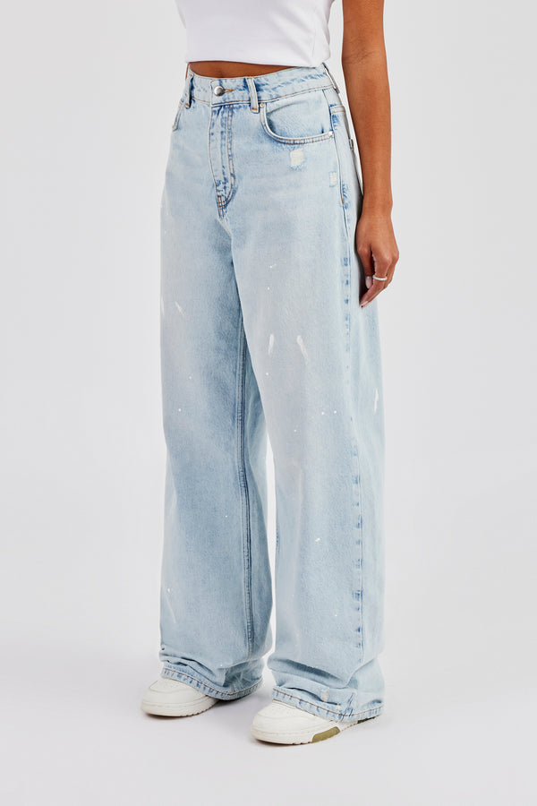 Distressed Paint Splatter Jean - Ice Blue