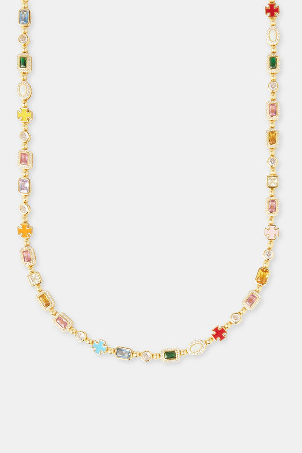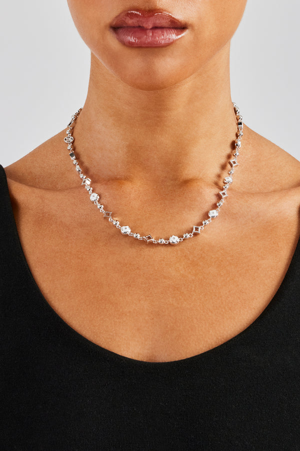 Iced Motif Outline & Gemstone Necklace - 10mm