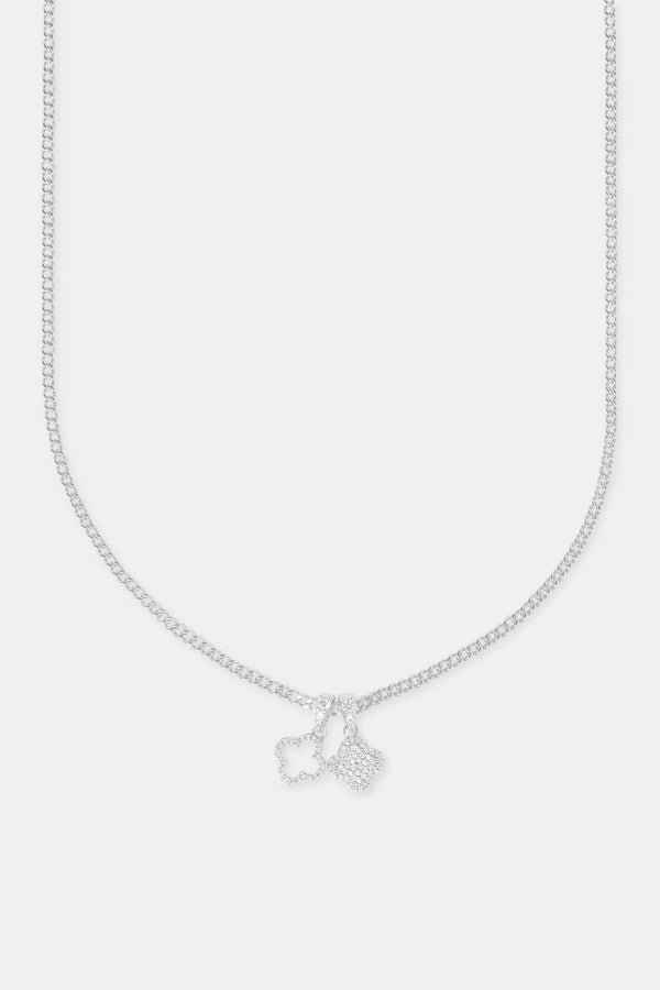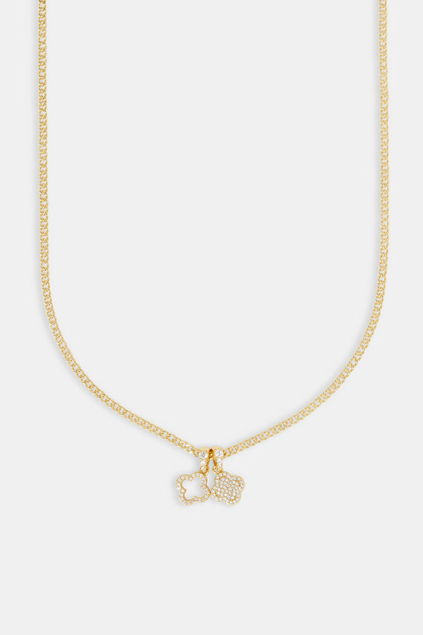 Double Layer Iced & Heart Rolo Necklace - 12mm