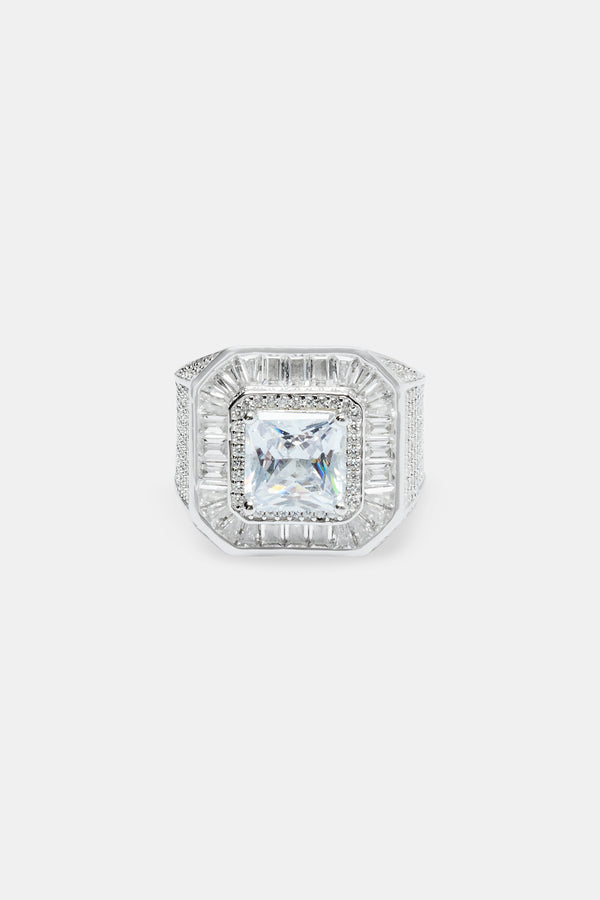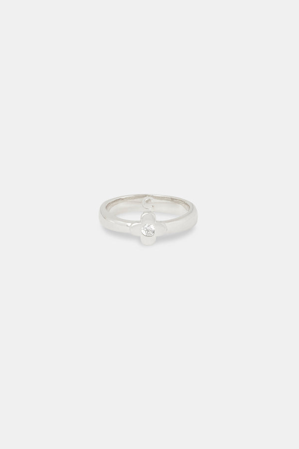 Iced Motif Outline Band Ring - 6mm - White
