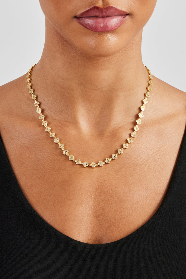 Iced Motif Outline Micro Necklace - 6mm - Gold