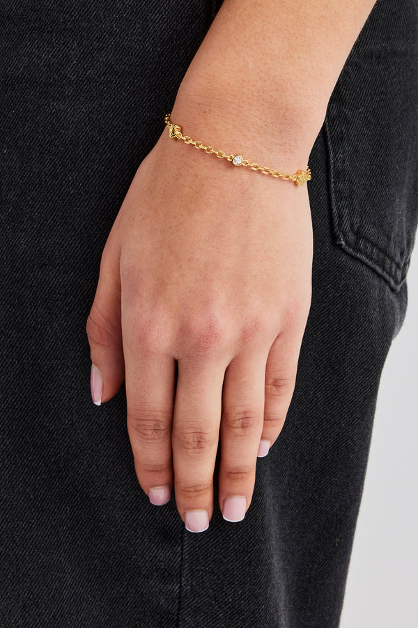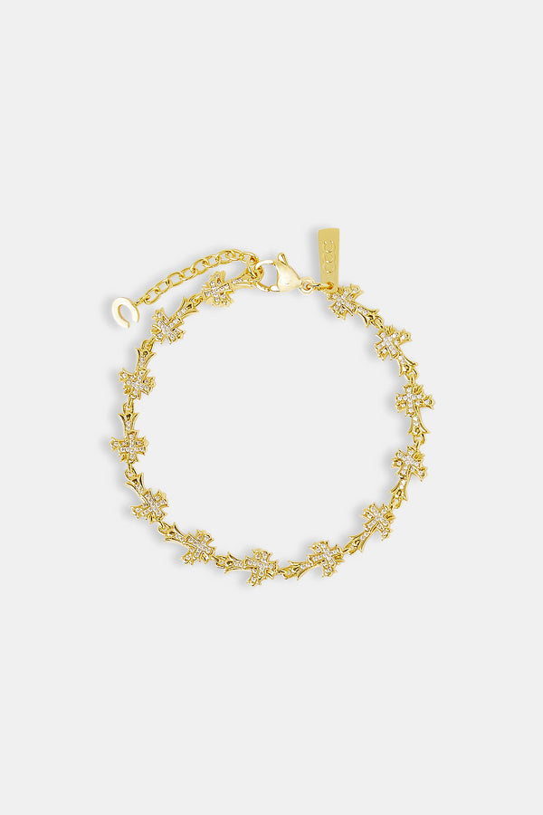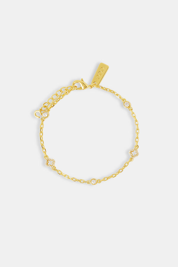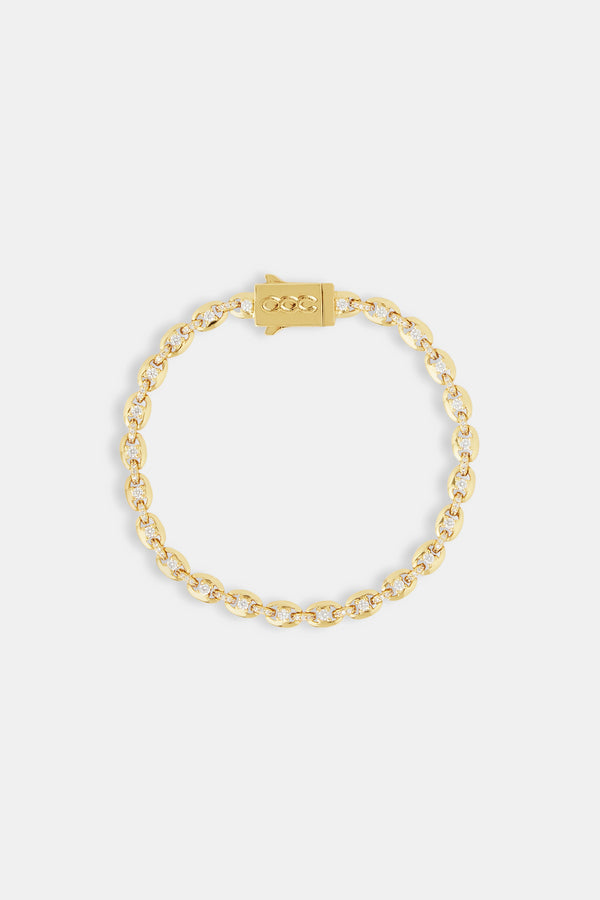 Iced Motif Outline & Gemstone Micro Cuban Bracelet - 2.5mm - GoldIced Motif Outline & Gemstone Micro Cuban Bracelet - 2.5mm - Gold