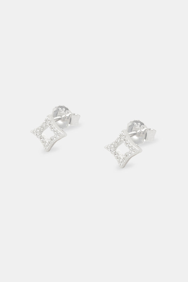 Iced Centre Heart Stud Earrings - 6mm - White