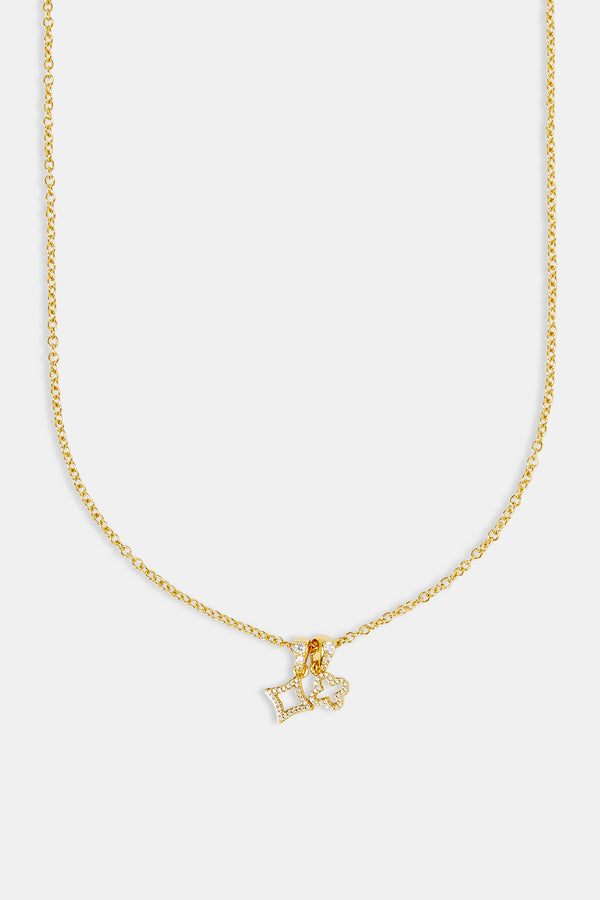 Iced Motif Outline Micro Necklace - 6mm - Gold