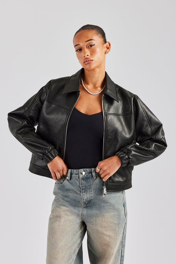 Heavyweight Jersey Collared Bomber Jacket - Black