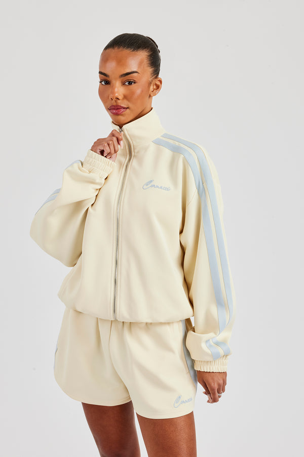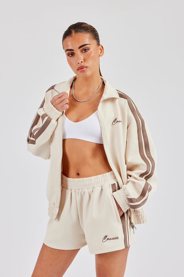Funnel Neck Taping Zip Through Track Jacket - Taupe
