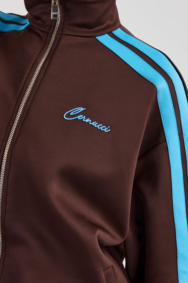Funnel Neck Pink Taping Zip Through Track Jacket - Chocolate