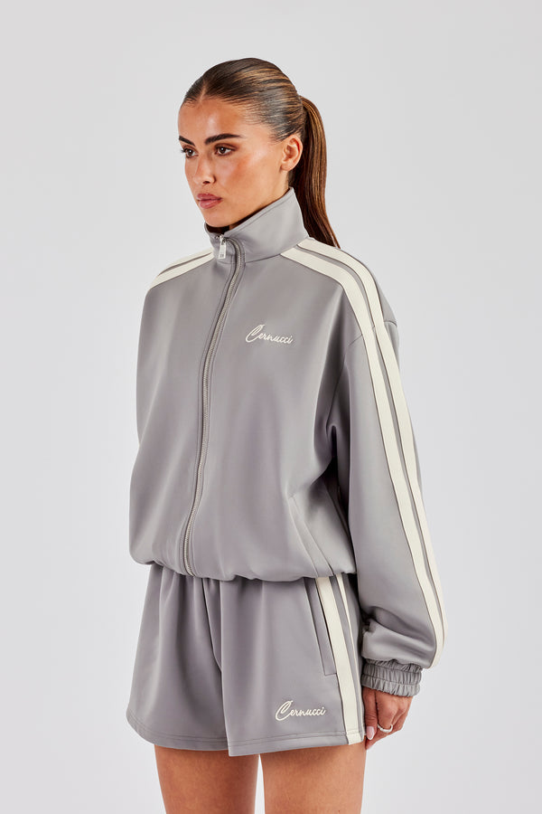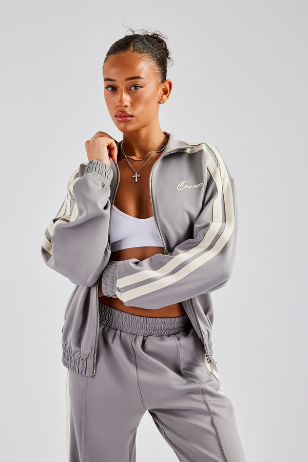 Funnel Neck Taping Zip Through Track Jacket - Charcoal