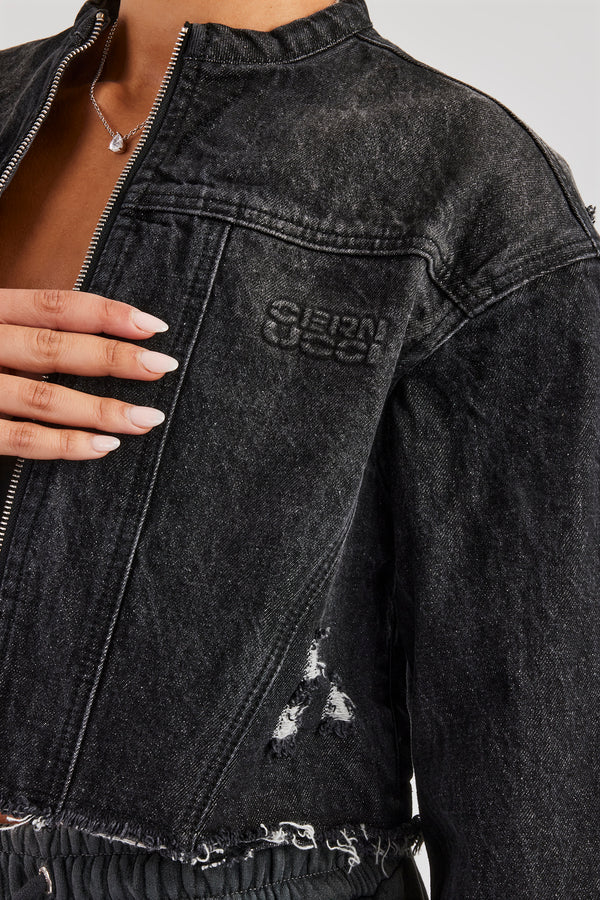 Tailored Jersey Cropped Harrington Jacket - Ash Grey