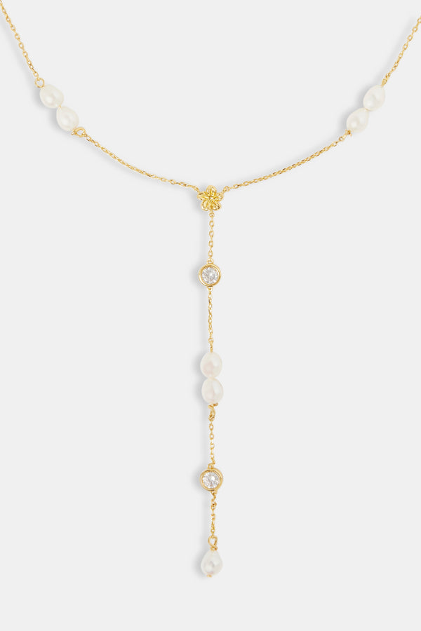 Freshwater Pearl Pink Cowrie Shell Necklace - Gold - 6mm