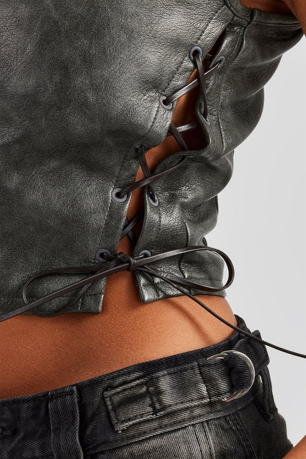 Ribbed Cropped Tank Top with Trim Detail - Stone