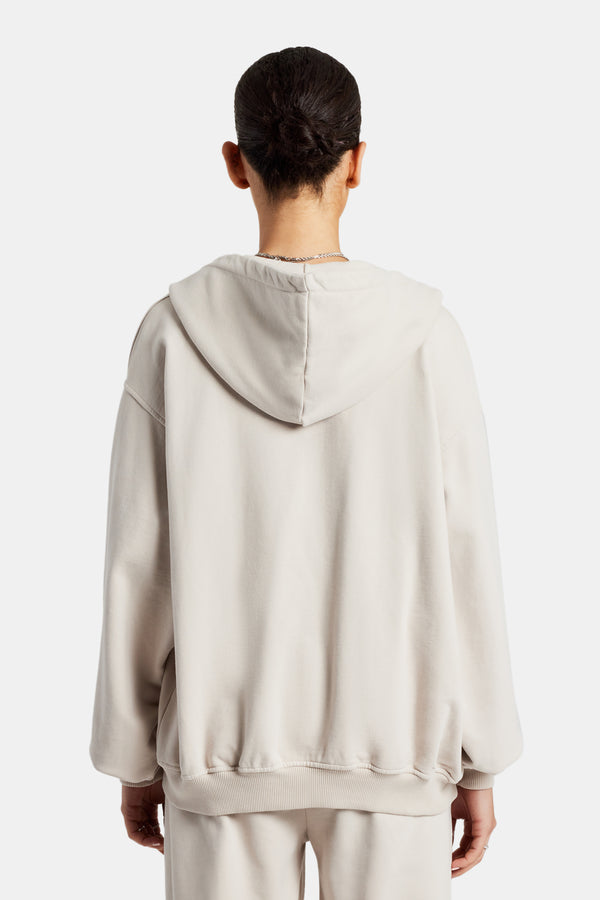 Rib Zip Through Funnel Neck Sweat - Ash Grey