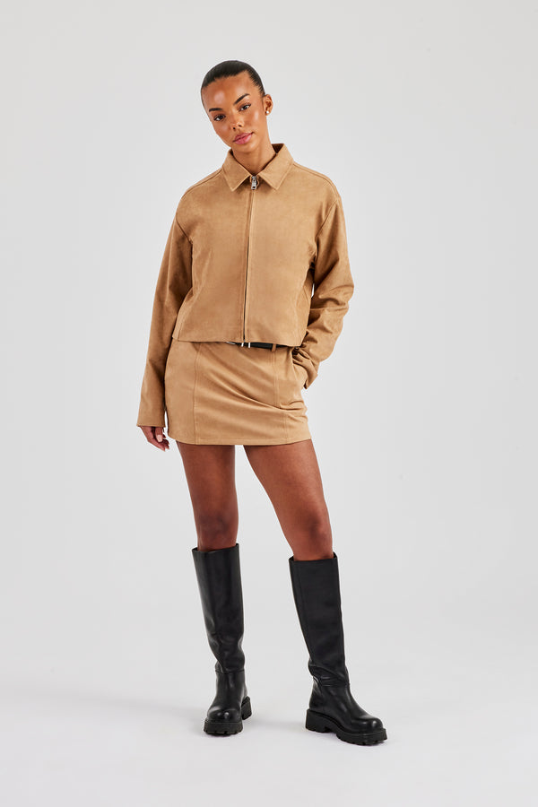 Poly Collared Bomber Jacket & Wide Leg Trouser - Chocolate