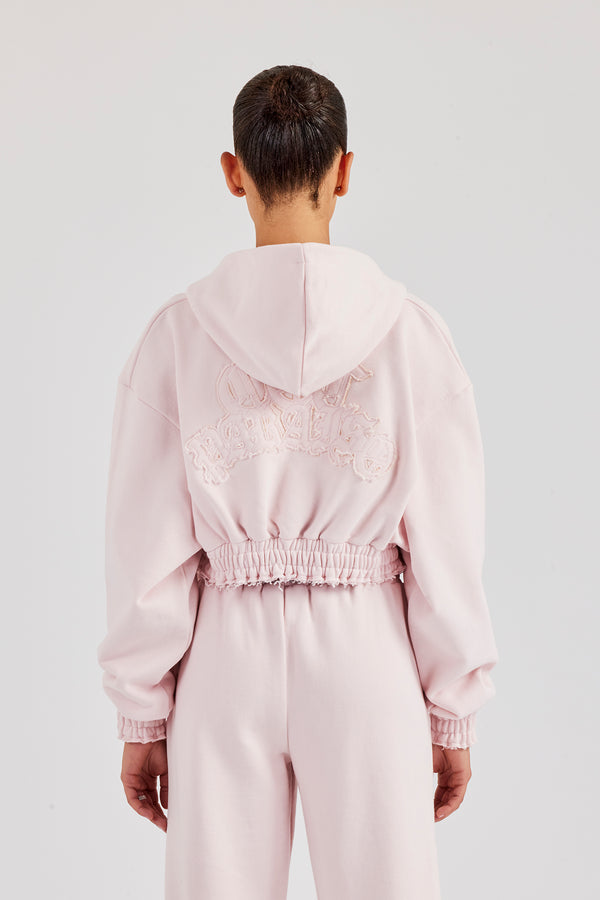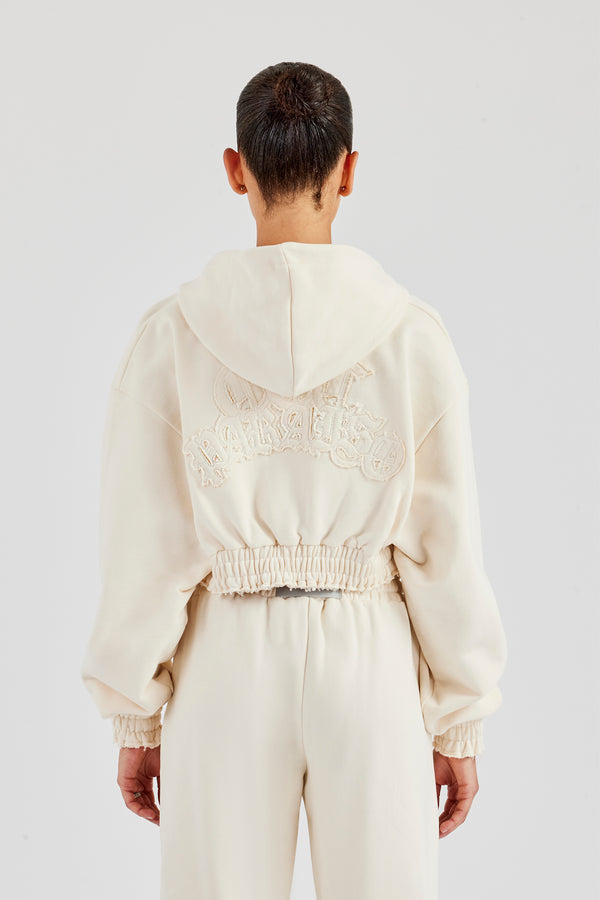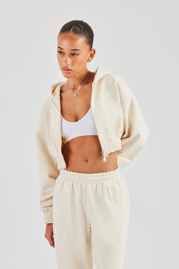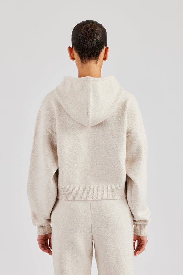 Cropped Knit Zip Hoodie - Cream