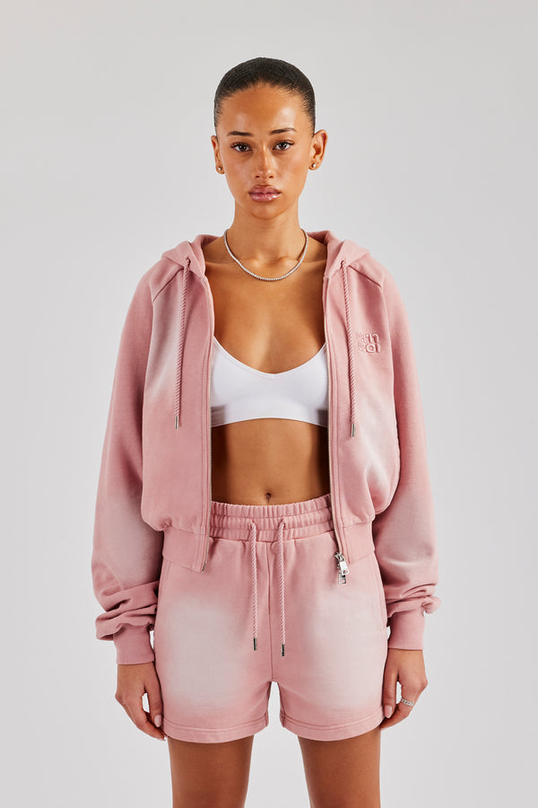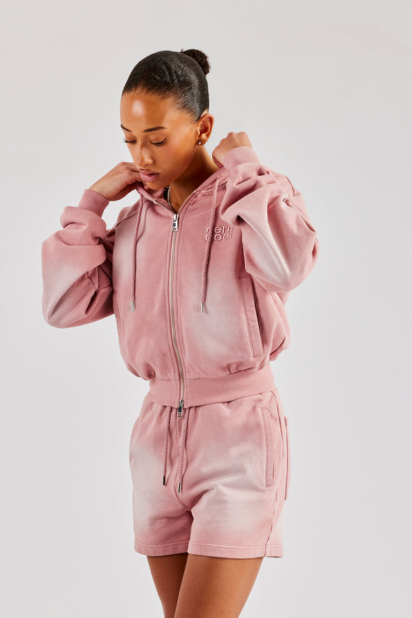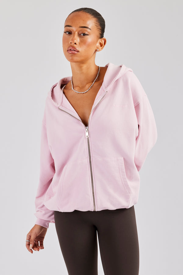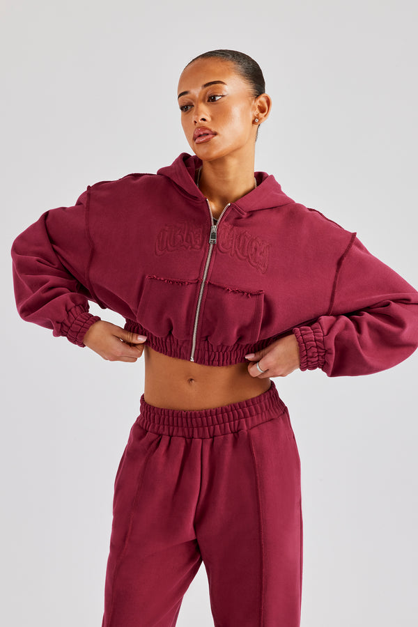 Washed Boxy Fit Zip Through Hoodie - Burgundy