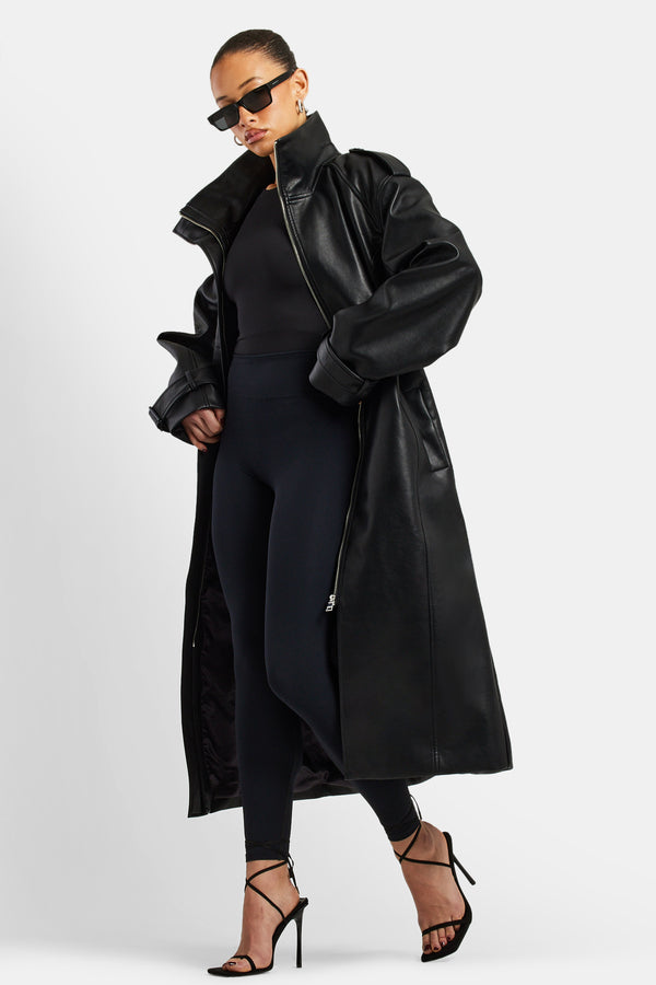 Washed PU Harrington Jacket - Black