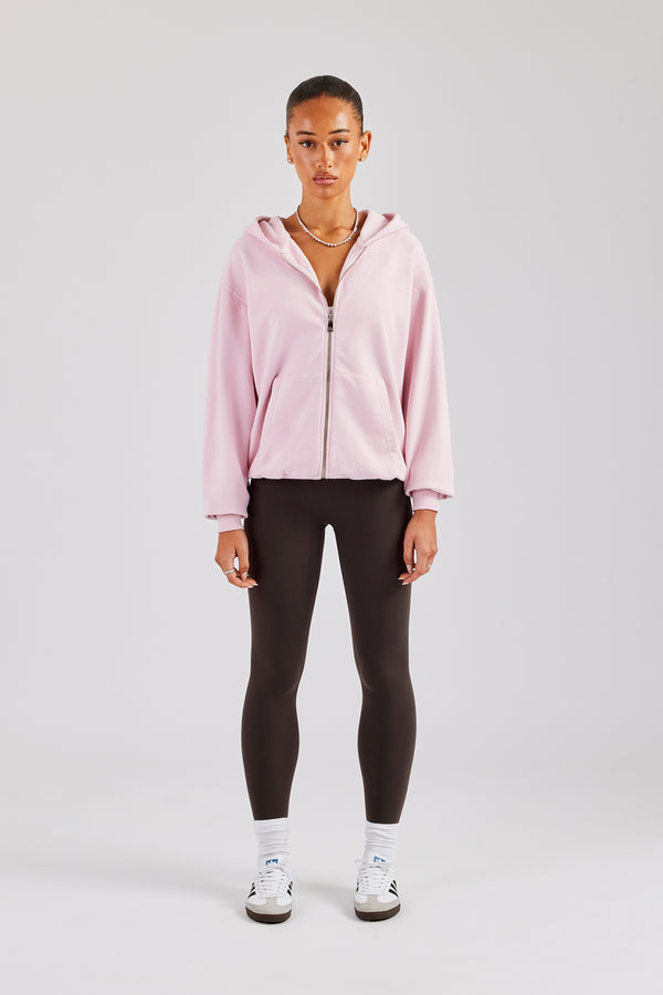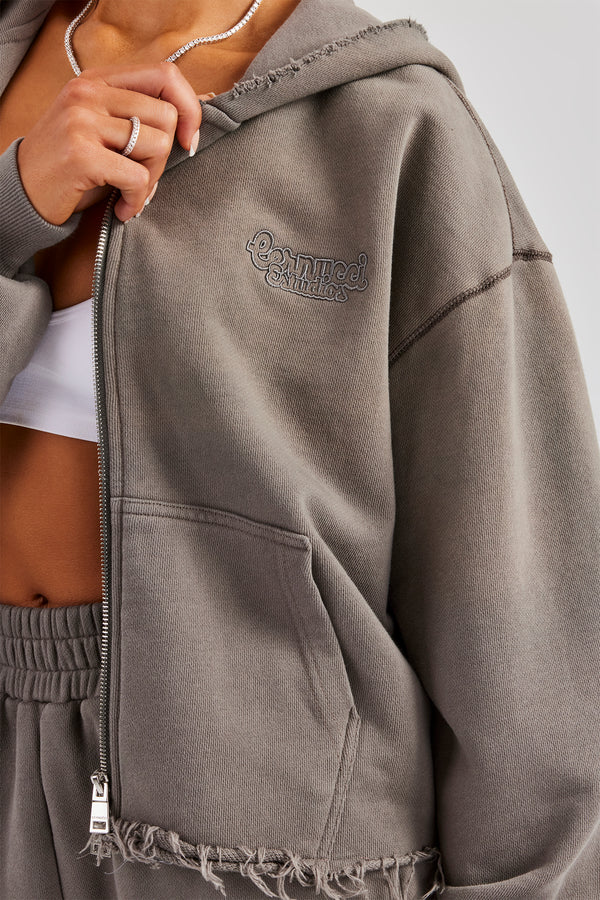Moto Boxy Zip Through Hoodie - Washed Chocolate
