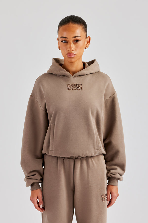 Distressed 86 Oversized Hoodie - Chocolate