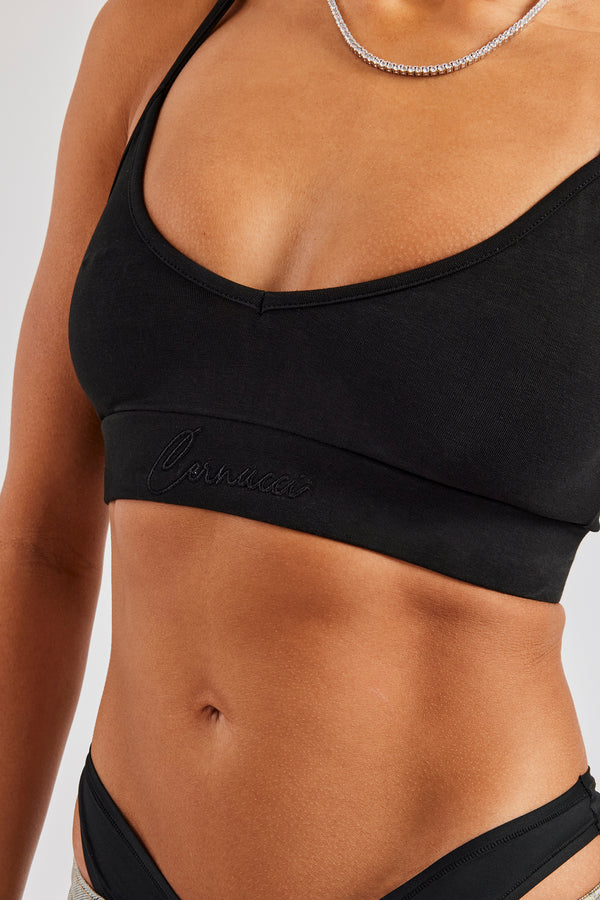 Cropped Rhinestone T-Shirt - Black