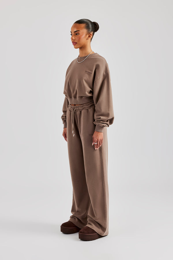 Moto Boxy Zip Through Hoodie & Wide Leg Jogger - Washed Chocolate