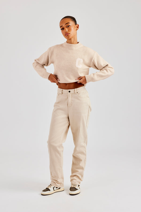Knitted Cernucci Back Detail Wide Leg Jogger - Brown