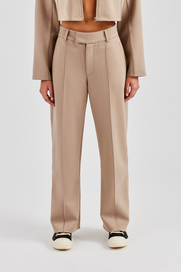 Suede Wide Leg Trouser- Beige