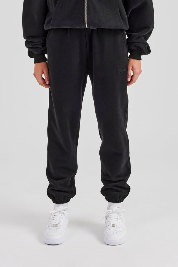 Womens Washed Wide Leg Jogger - Black