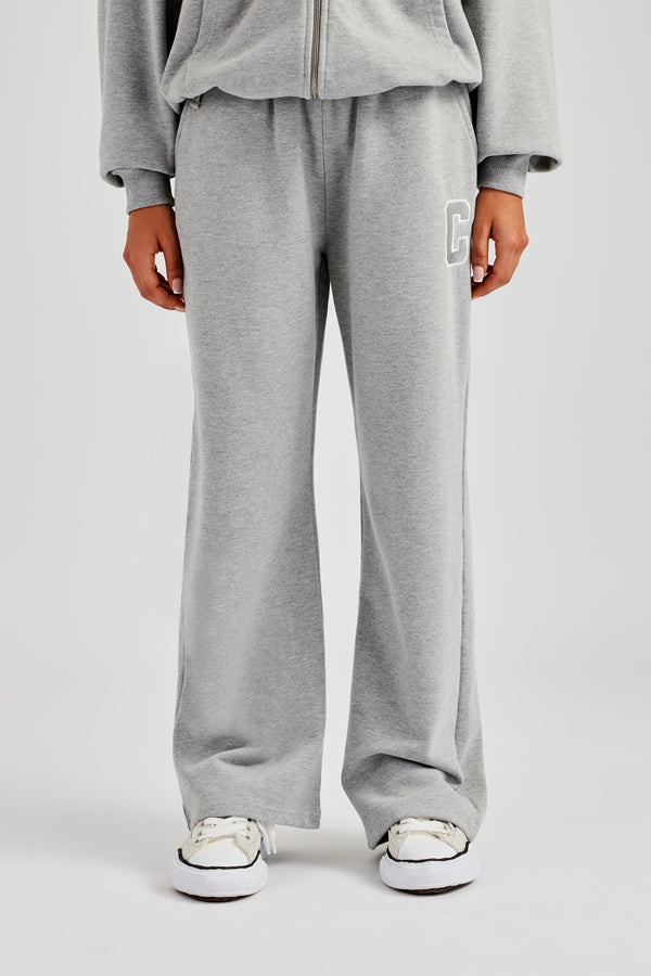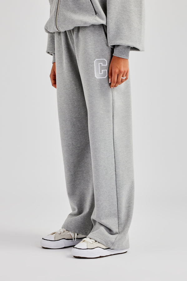 Embroidered Cernucci Wide Leg Jogger - Ash Grey