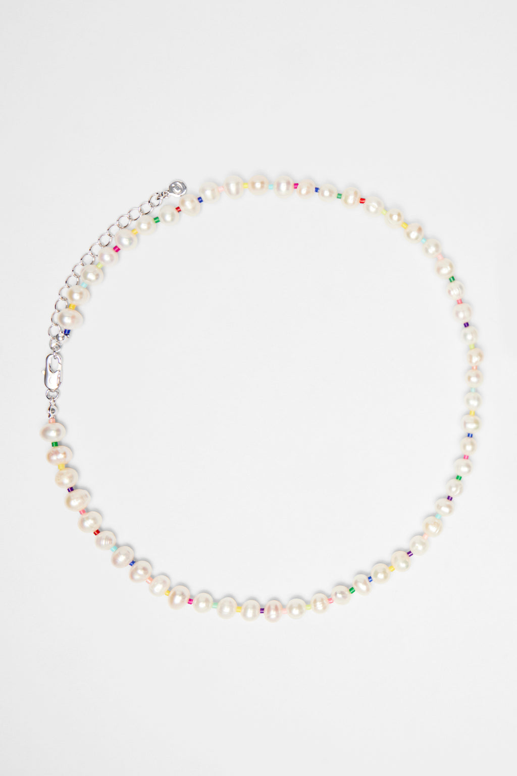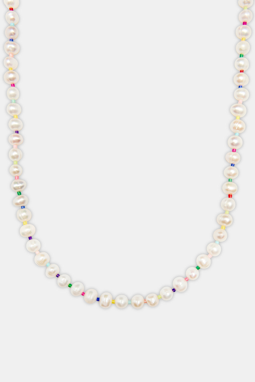 Halskette mit 6 mm Süßwasserperlen und mehrfarbigen Mikroperlen