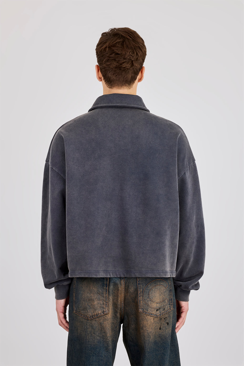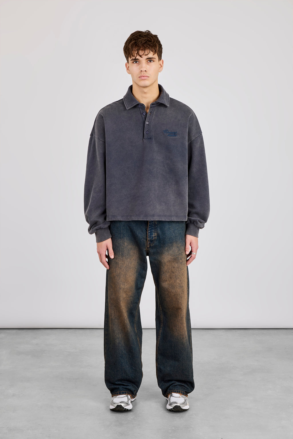 Polo-Sweatshirt in verwaschenem Marineblau. Hochwertiger, schwerer und weicher Jersey. Kombinieren Sie es mit unserer passenden Jogginghose für den perfekten Look.