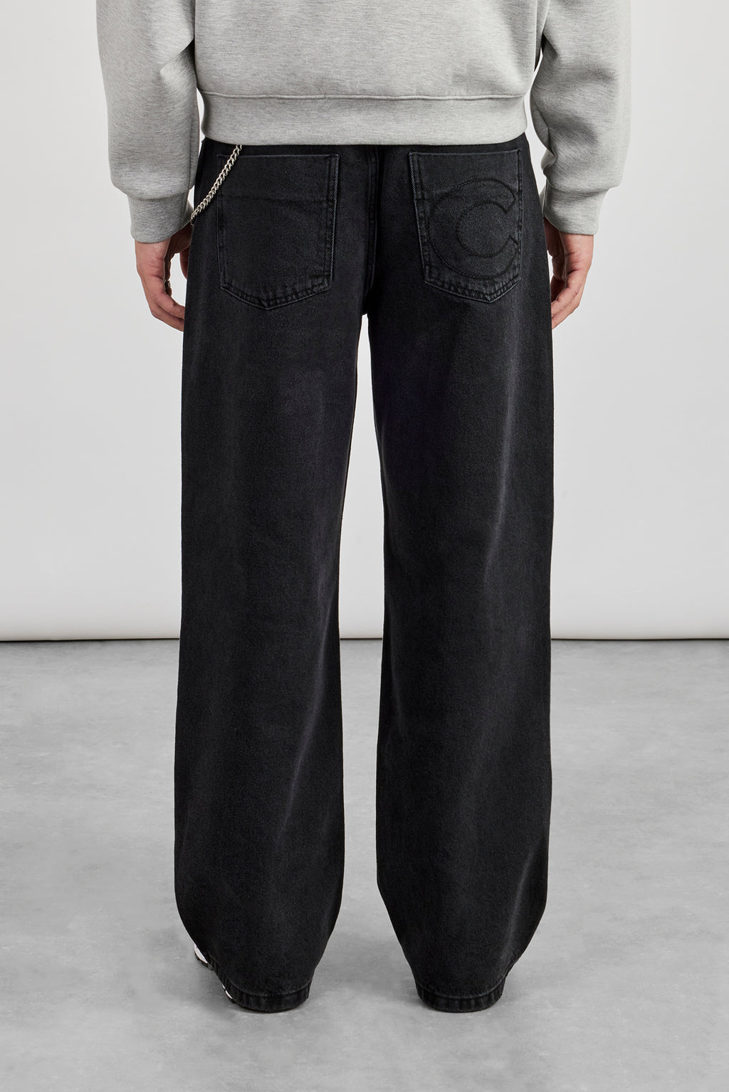 Gewaschene schwarze Jeans aus robustem Baumwoll-Denim. Lässige Passform mit Carpenter-Einsatz und Markendetails.