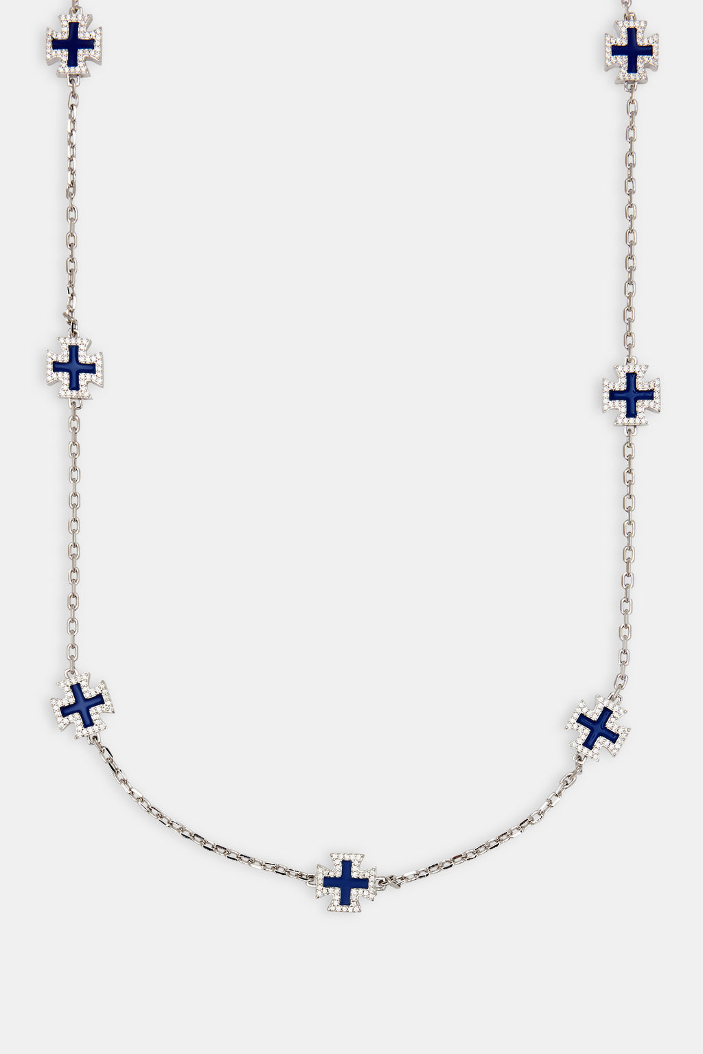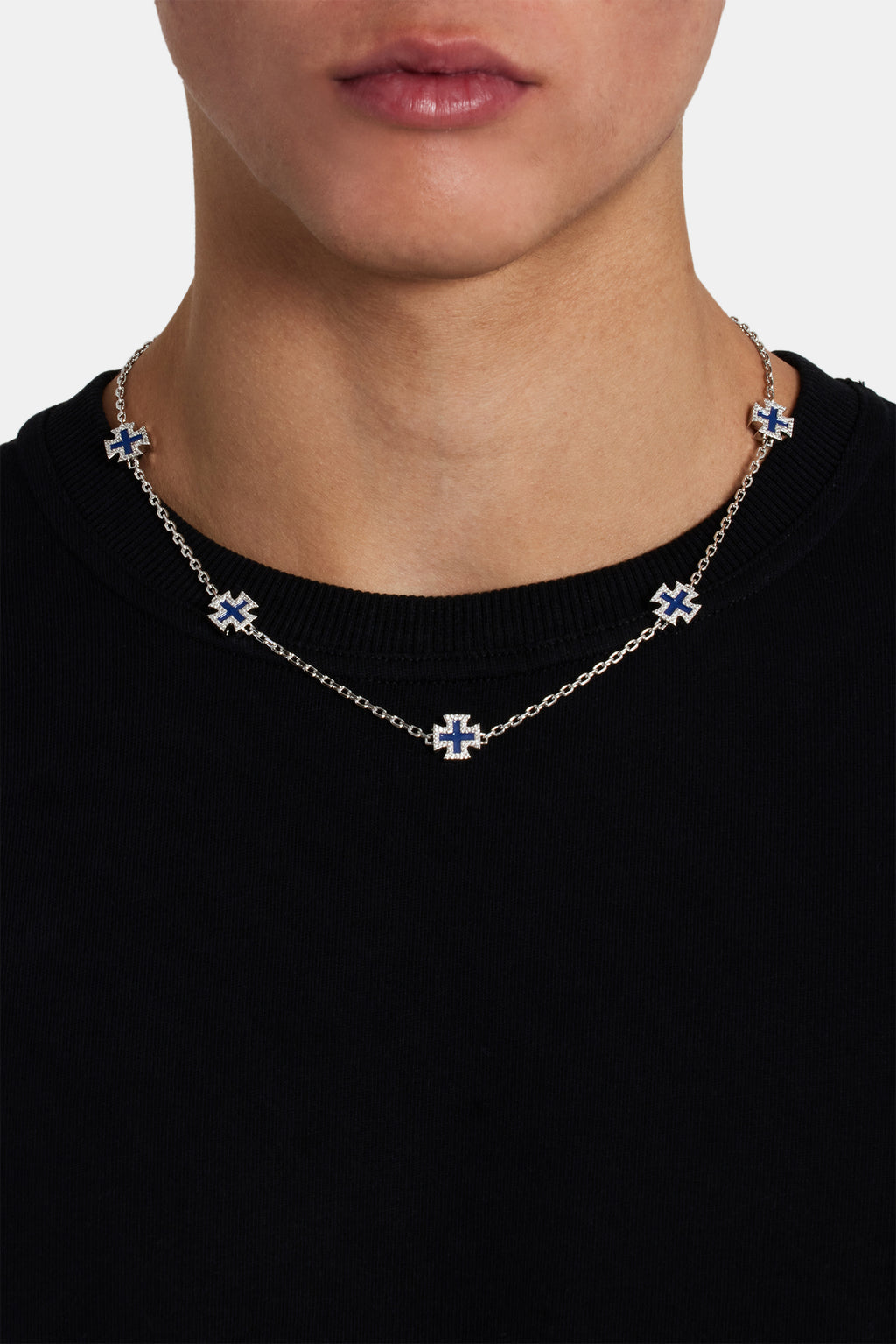 Unsere Kette mit blauem Emaille-Kreuzmotiv wurde entworfen, um Ihrer Schmucksammlung eine andere Note zu verleihen.