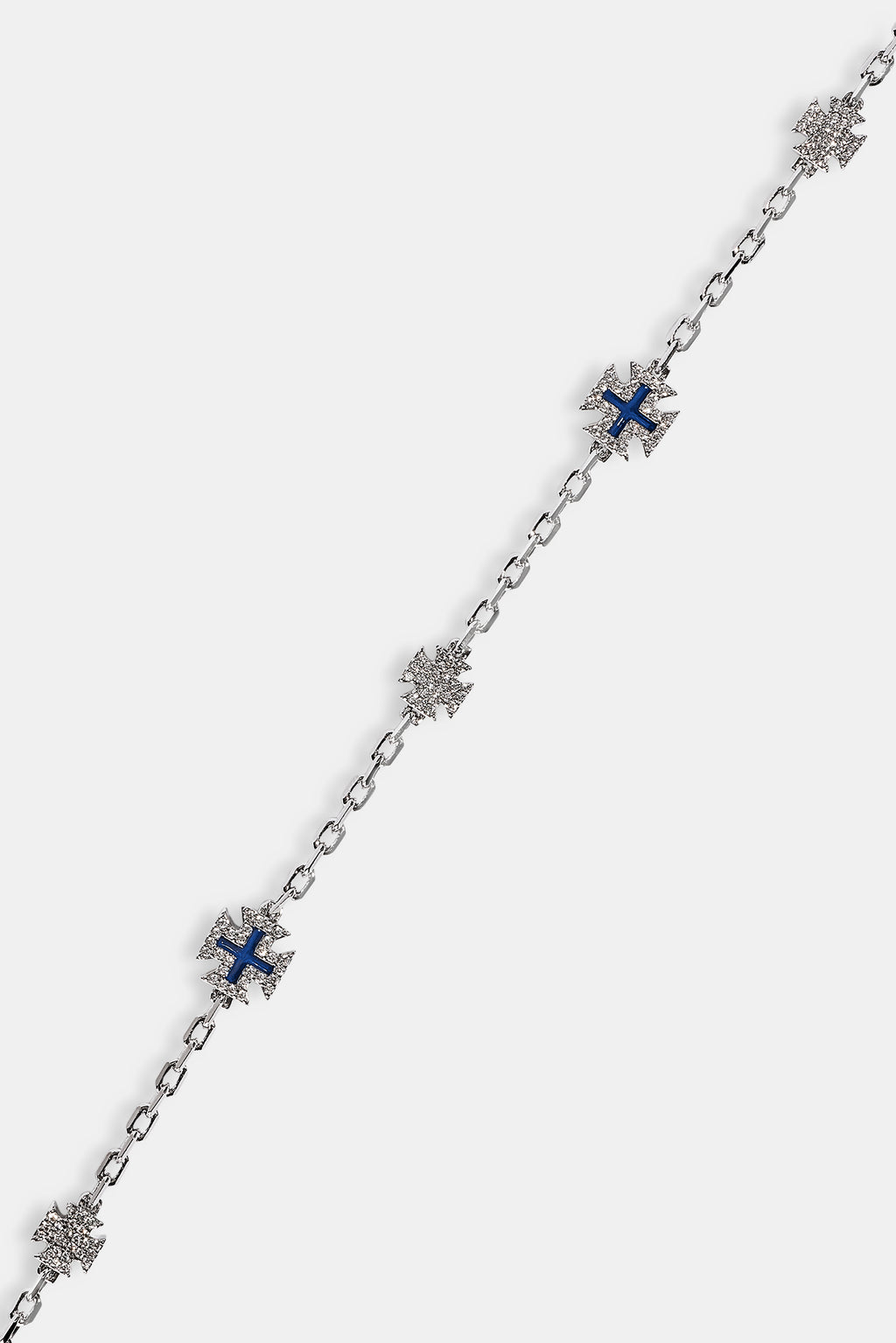 Dieses Armband mit Mikromotiv bringt einen Hauch von blauem Emaille auf eine saubere Rolo-Kette – dezent, elegant und einfach zu stapeln.