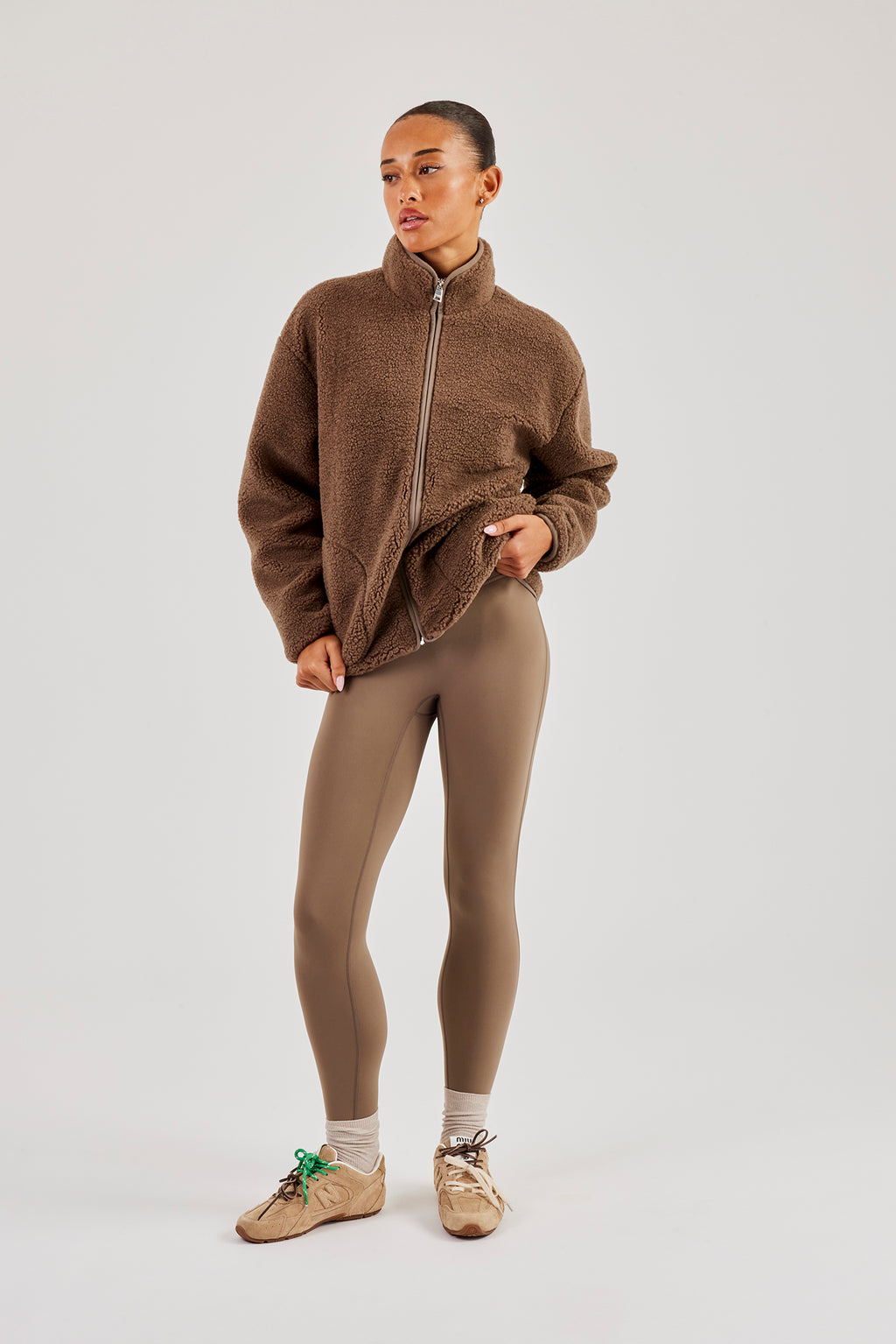 Brauner Borg-Reißverschluss mit Trichterhalsausschnitt in übergroßer Passform.
