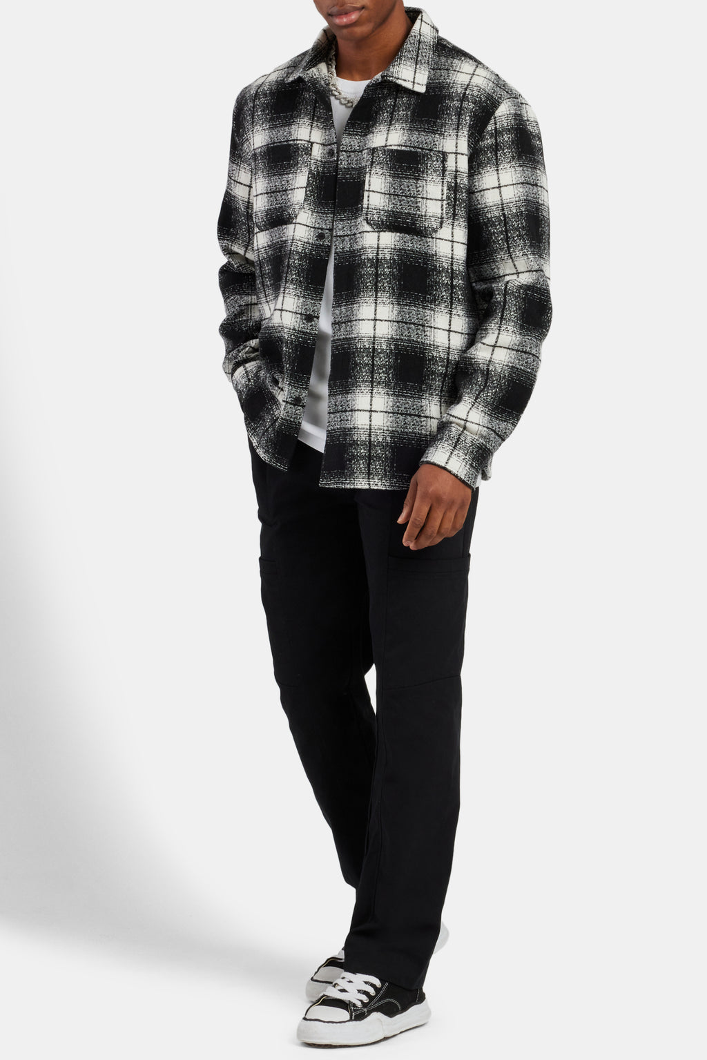 Schwarz-weiß kariertes Überhemd aus leichtem Bouclé-Stoff.