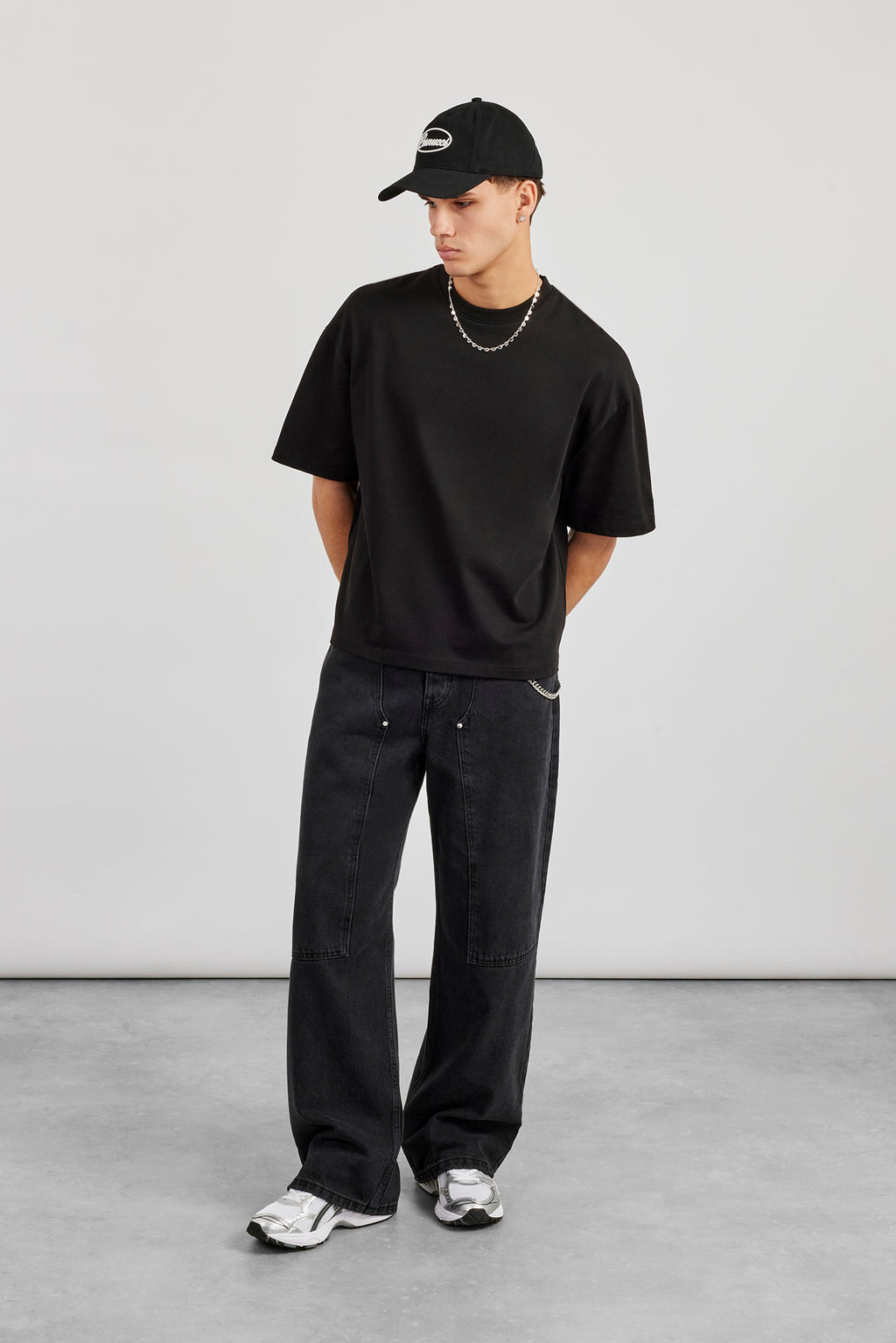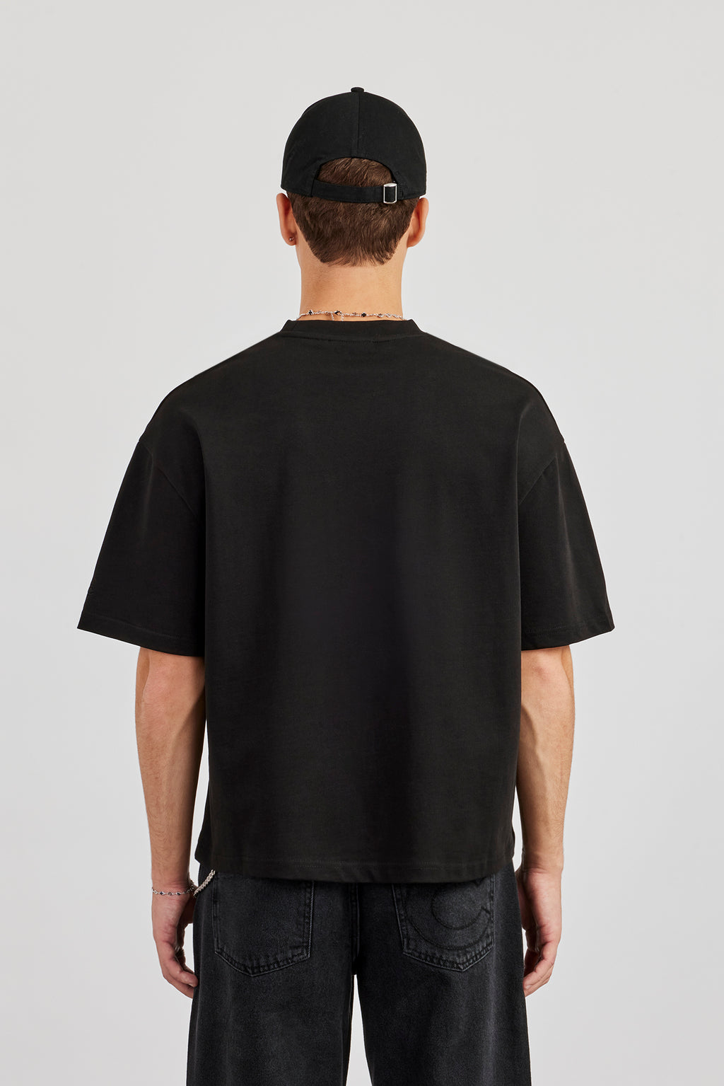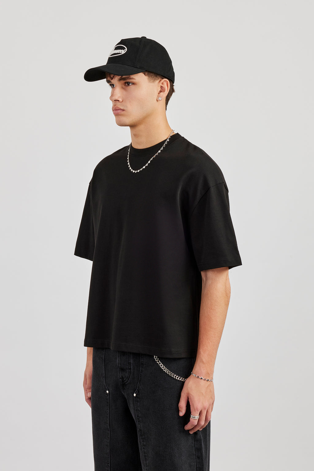 Unser T-Shirt mit kastenförmiger Passform in Schwarz aus mittelschwerer, weicher Baumwolle.