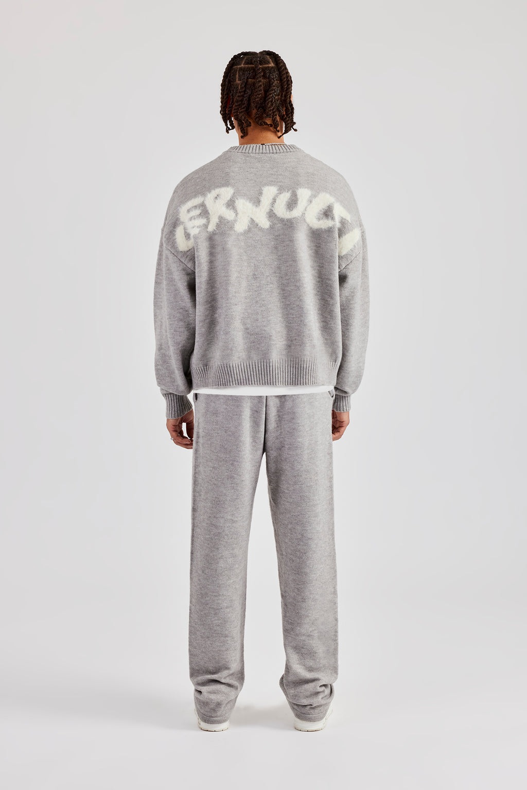 Grauer C-Jogger mit flauschigem Intarsiendetail. Kombinieren Sie ihn mit unserem flauschigen Intarsienpullover, um den Look zu vervollständigen.