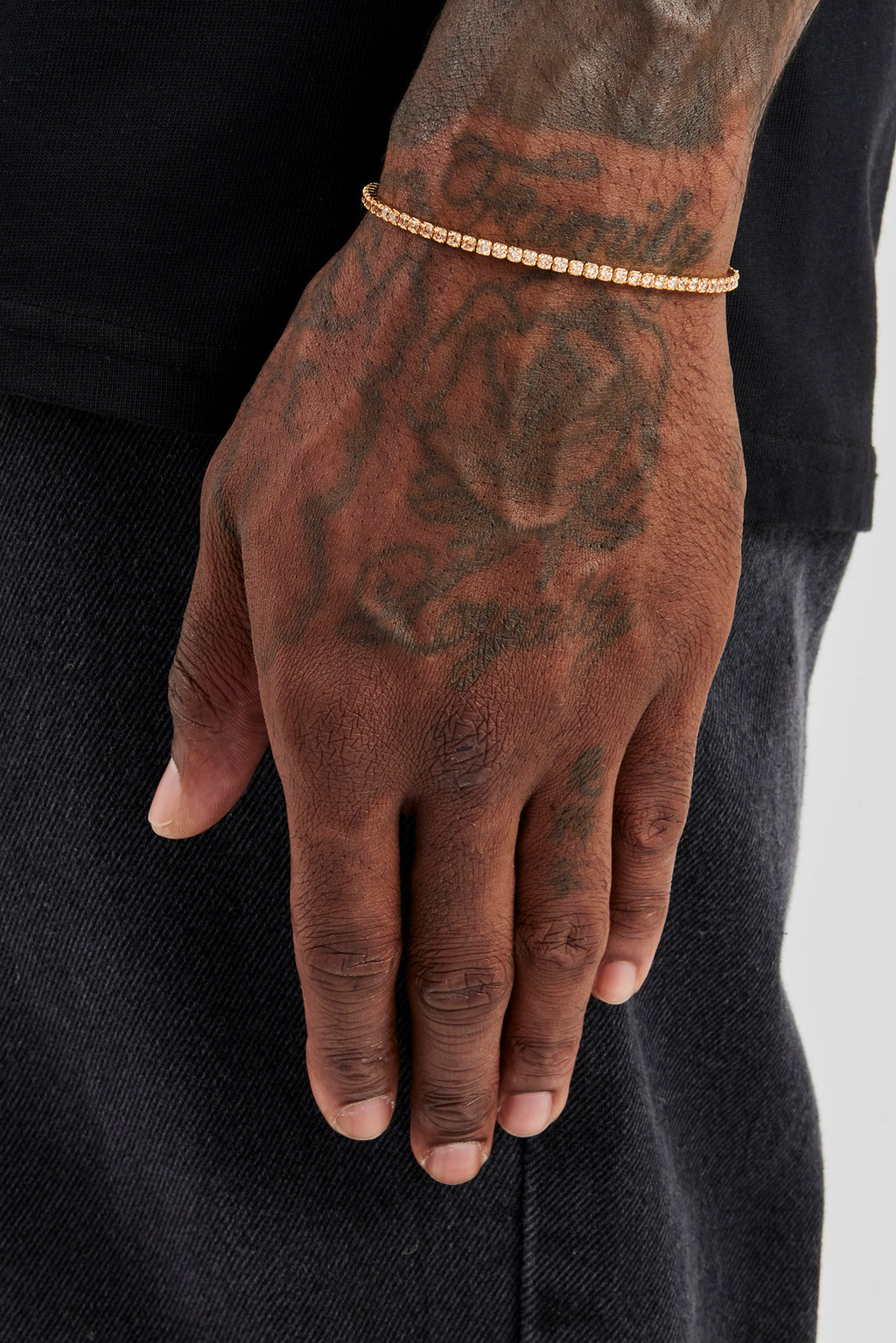 Die Champagner-Tenniskette sorgt mit warmen Champagner-Steinen rundherum für dezentes Funkeln. Sie ist glatt, edel und fängt das Licht wie keine andere ein. Tragen Sie sie für den Glanz im Alltag oder peppen Sie Ihren Ausgeh-Look auf – so oder so, sie bietet maximalen Komfort ohne großen Aufwand.