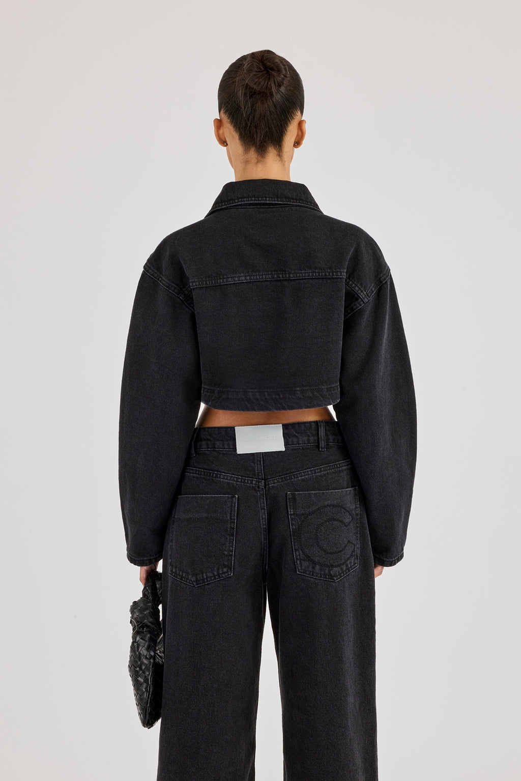 Cropped curved hem denim jacket, made from mid weight premium denim. Pair with our matching jeans to complete the look!