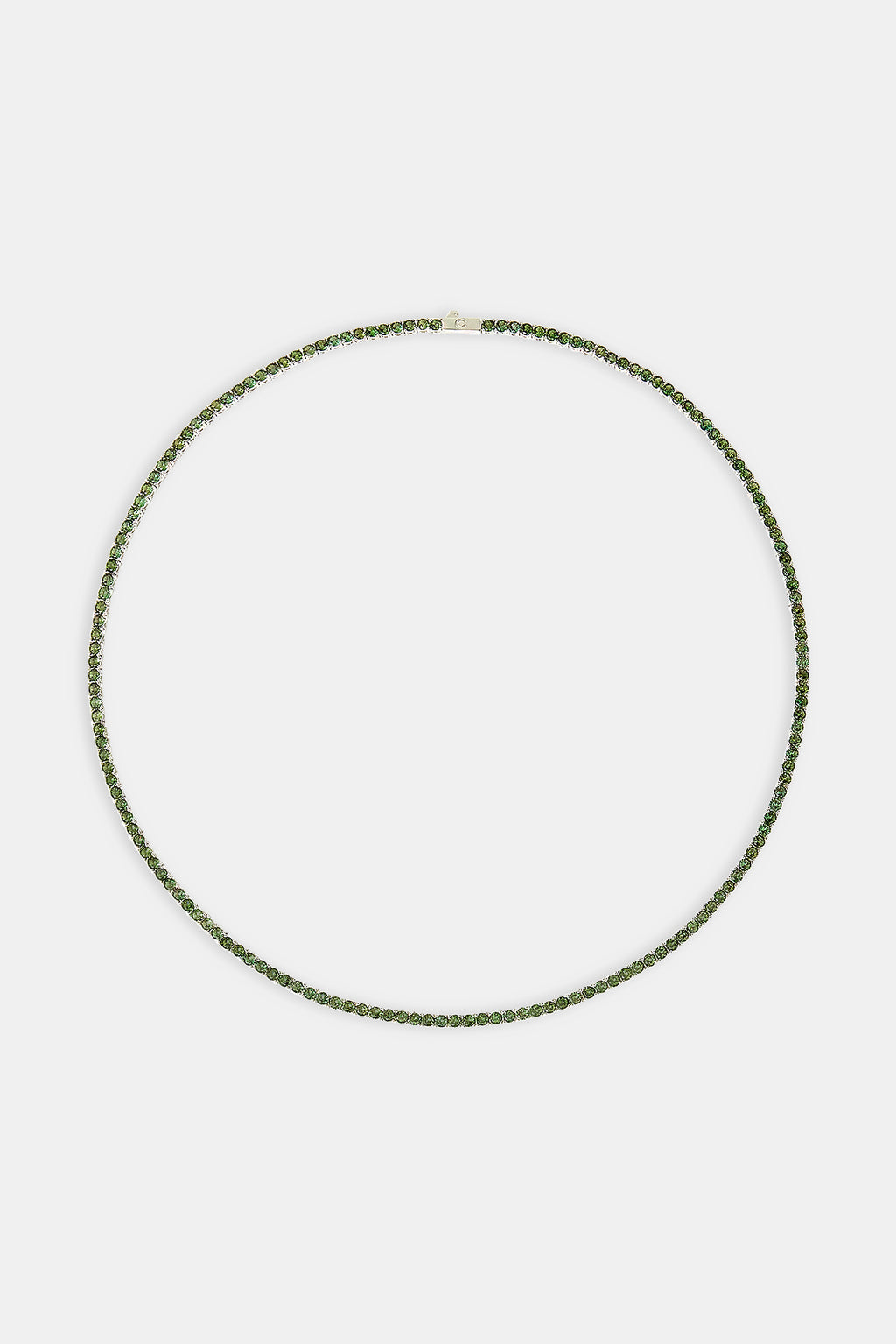 Die dunkelgrüne Tenniskette besteht aus funkelnden grünen Steinen, die für ununterbrochenen Glanz und eine tolle Aura sorgen.