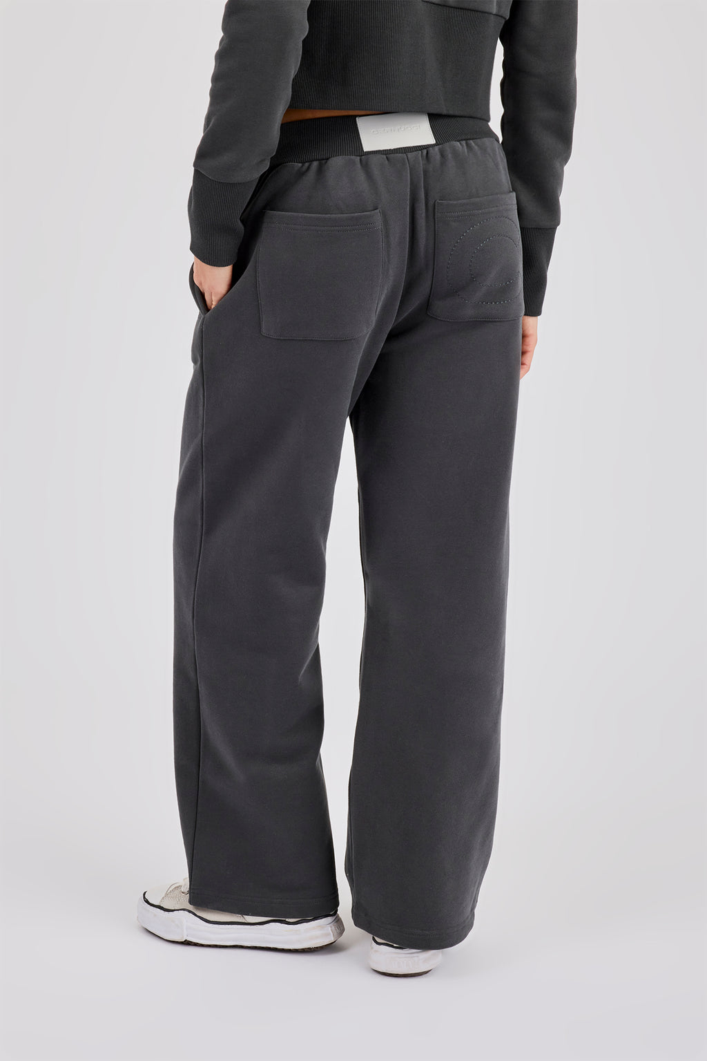 Anthrazitfarbene, taillierte Jogginghose mit weitem Bein aus weichem Jersey mit Rippstrickdetails
