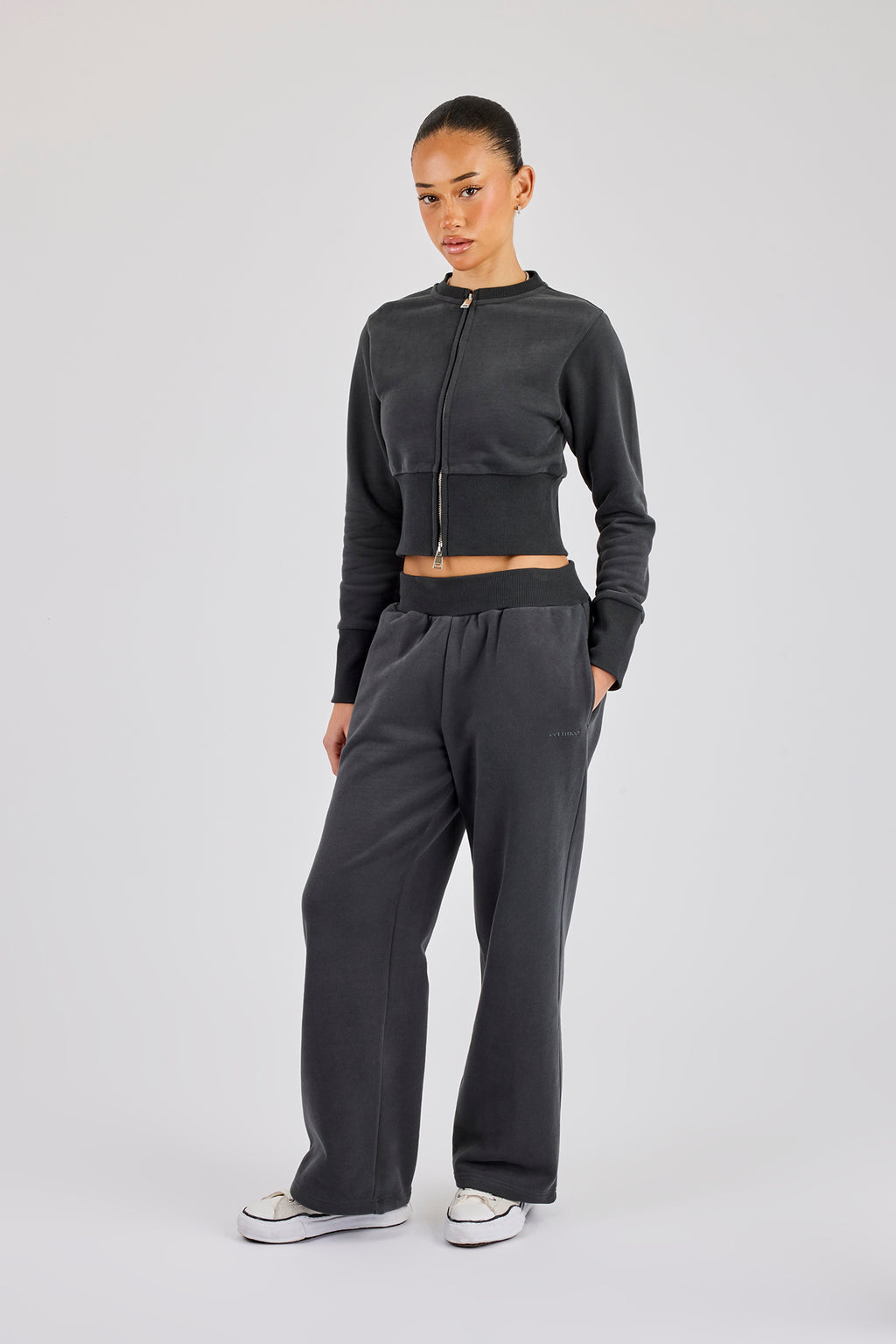 Figurbetontes Sweatshirt mit Rippstrick und Reißverschluss sowie Jogginghose mit weitem Bein – Anthrazit