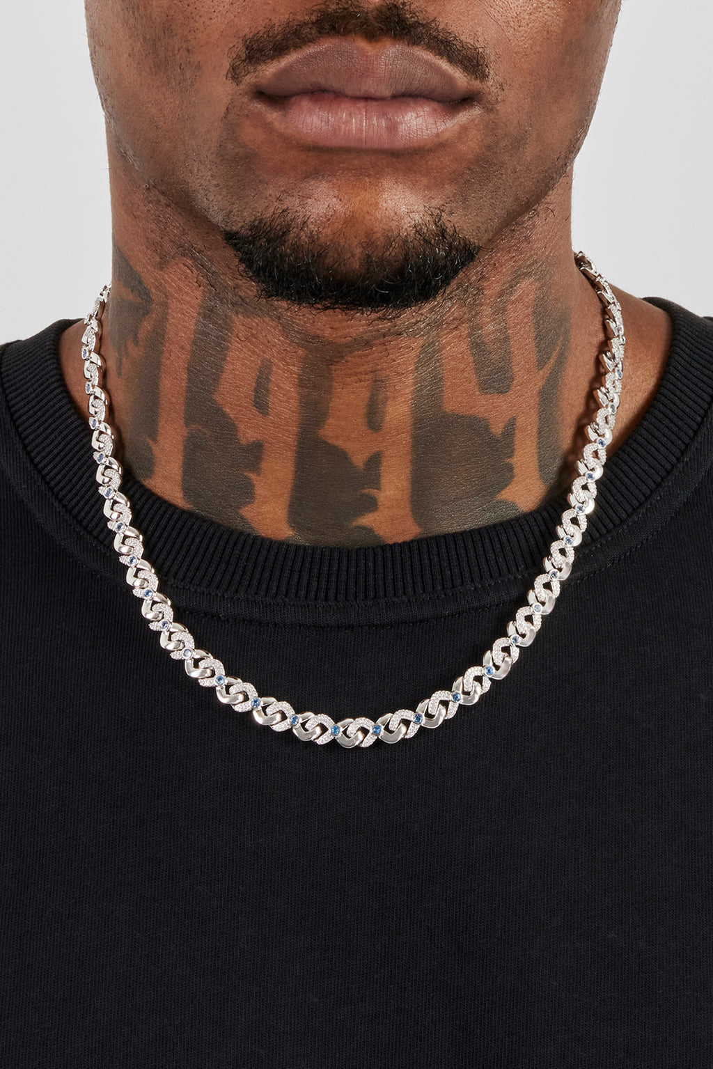 Möchten Sie Ihren klassischen Look mit viel Glanz aufwerten? Unsere 6 mm starke Infinity-Kette mit blauen Iced Stones ist genau das Richtige für Sie. Die durchgehenden Iced Stones fangen das Licht aus allen Winkeln ein und lassen Ihren Hals Tag und Nacht tanzen.